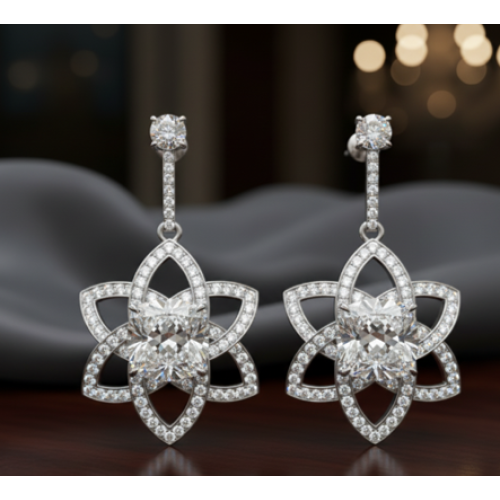 These elegant drop earrings showcase the six-pointed star knot as their main feature, designed to gracefully frame the face. Each knot is intricately crafted with shimmering diamonds, capturing light and symbolizing steadfastness, with a brilliant central stone or diamond for added opulence.